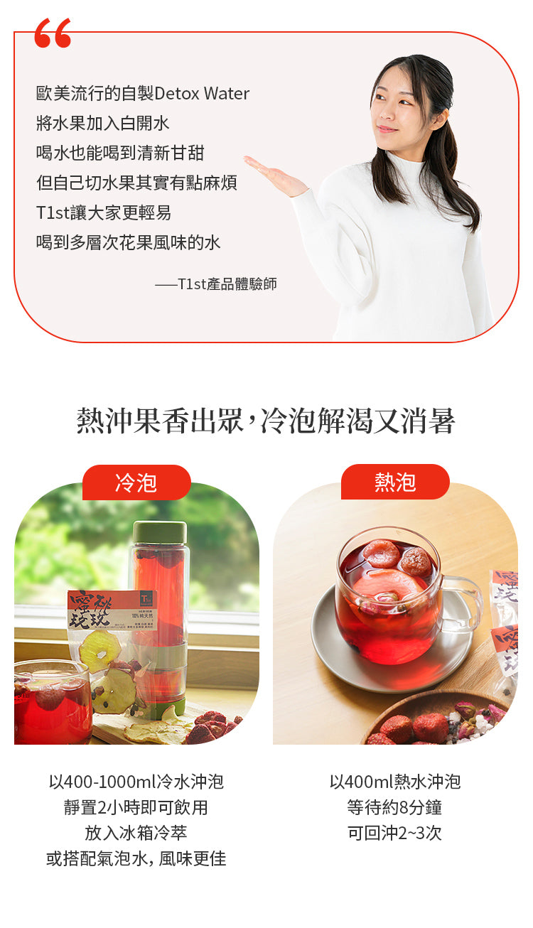 冷泡:以400ml溫水沖泡,放入冰箱冷藏1-2小時,即可飲用;搭配氣泡水飲用,口味更佳~